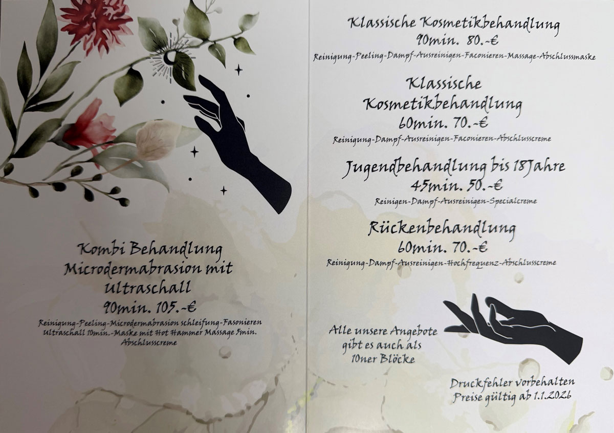 Karin Dichtl und das Team begrüßen Sie herzlich auf der Website und laden Sie ein, das Studio Karin hier kennenzulernen. Kommen Sie herein, fühlen Sie sich in angenehmer Atmosphäre wohl und freuen Sie sich auf Ihre Schönheitsbehandlung. Wir bieten Ihnen ein breites Spektrum an wohltuenden Angeboten von Kopf bis Fuß – entspannen Sie sich und genießen Sie Ihre Fußpflege, die Kosmetikbehandlung oder Maniküre. Im Studio Karin werden ausschließlich hochwertige Produkte rund um die Pflege angewendet wie beispielsweise Dr. Grandl oder Gewohl. Auf Hygiene legen wir genauso großen Wert wie darauf, dass Sie sich bei uns rundum wohlfühlen und gerne wiederkommen.